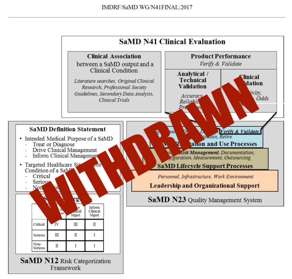 FDA formally withdrew the guidance “Software as a Medical Device (SaMD): Clinical Evaluation,” originally issued in 2017 and based on IMDRF principles.